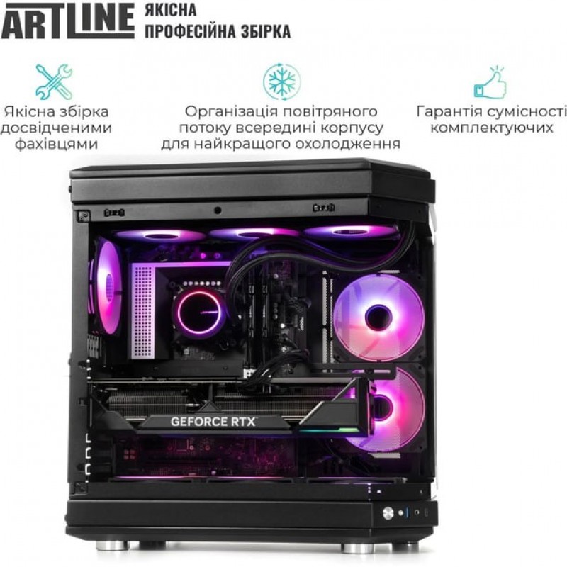 Комп'ютер ARTLINE Gaming TANK (TANKv02) - це потужний та стильний системний блок для ігор та роботи. Він оснащений десятиядерним процесором Intel Core i5-14400F з водяним охолодженням, 32 ГБ оперативної пам'яті DDR5-6000, 1 ТБ швидким накопичувачем NVMe SSD та відеокартою GeForce RTX 4060 Ti з 8 ГБ відеопам'яті. Материнська плата B760M DS3H підтримує чипсет Intel B760 та забезпечує стабільну роботу системи. Корпус QUBE F-TANK Black ARGB має оригінальний дизайн, панелі із загартованого скла з двох сторін, вентиляційну сітку на верхній панелі та вентилятори з RGB підсвічуванням. Блок живлення 750 Вт 80+ Bronze гарантує надійне живлення. Комп'ютер постачається без операційної системи. Гарантія на комп'ютер складає 38 місяців.